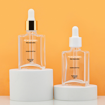 에센셜 오일 세럼 스킨 케어 크림을위한 럭셔리 커스텀 30ml 스퀘어 에어리스 리필 유리 스포이드 병 스크린 인쇄